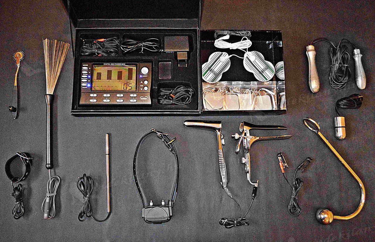 Hatalmas az eszköztár, ami ehhez a különleges élményhez rendelkezésre áll a legkisebbtől a legnagyobb méretig, hiszen nem a méret a lényeg: Sokszor és szívesen használom valamelyik speciális prosztata masszírozómat, egy finomabb vagy vadabb vibrátoromat, thai füzéremet, dildómat (még a csiklóvibrátoromat is be szoktam vetni), a számos méretű és fajtájú strapon-om egyikét, a kisebb vagy a nagyobb dugógépemet vagy az elektro box prosztata izgatóját.